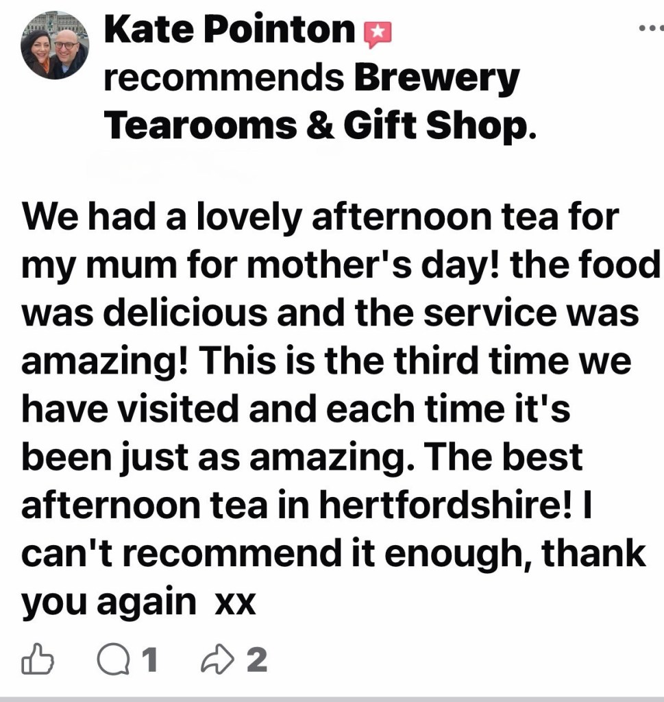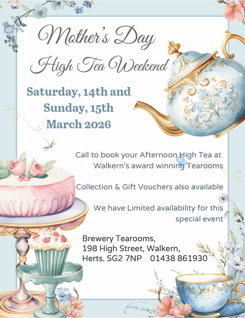Mother’s Day is early this year and we’re open all weekend; Saturday, 14th and Sunday, 15th March – call to book your special Mother’s Day High Tea – 01438 861930. ❤️x