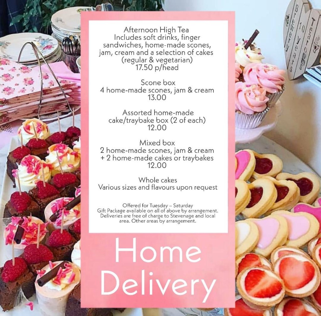 At this stage, we envisage our home delivery service will include Afternoon High Tea, home baked whole cakes, traybakes & our legendary scones. Our pre-bookable take-out service will initially offer teas and coffees (full selection from our extensive drinks menu ), freshly made scones and a choice of home baked cakes and traybakes.