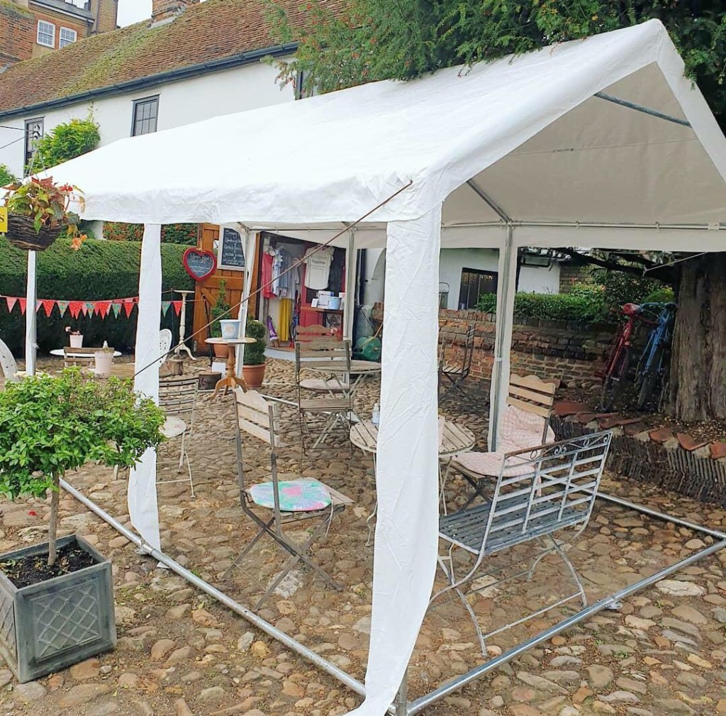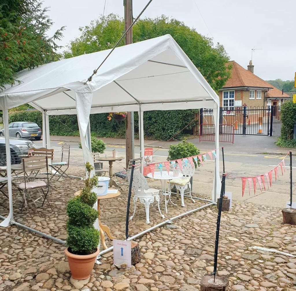 Our gazebo is up and we are open from 10.30am today, outside seating only, takeaways or call and collect service