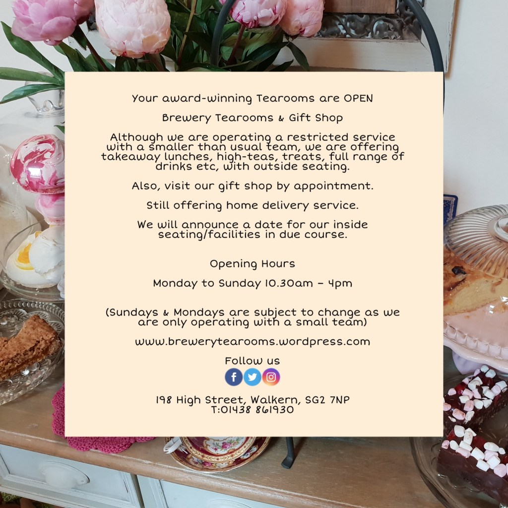 #takeaway #outsideseating #walkern #tearoom #cakes #brewerytearooms #staysafe #collection #delivery #herts #hertfordshire #afternoontea #tea #coffee #hightea #hertfordshiretearoom NEAR #stevenage #stevenageoldtown #buntingford #ardeley #benington #knebworth #cottered #datchworth #wattonatstone #cake #scones #celebrationcakes
