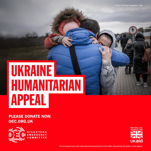 All our gratuities are donated to Charity: normally to Cancer Hair Care or a cancer related cause. However, due to the crisis in the Ukraine we will donate all gratuities from now until Saturday, 19 March to the Disasters Emergency Committee (DEC) charity. The Tearooms will match, pound for pound, all monies raised. Further, the Government have pledged to match up to £20million.